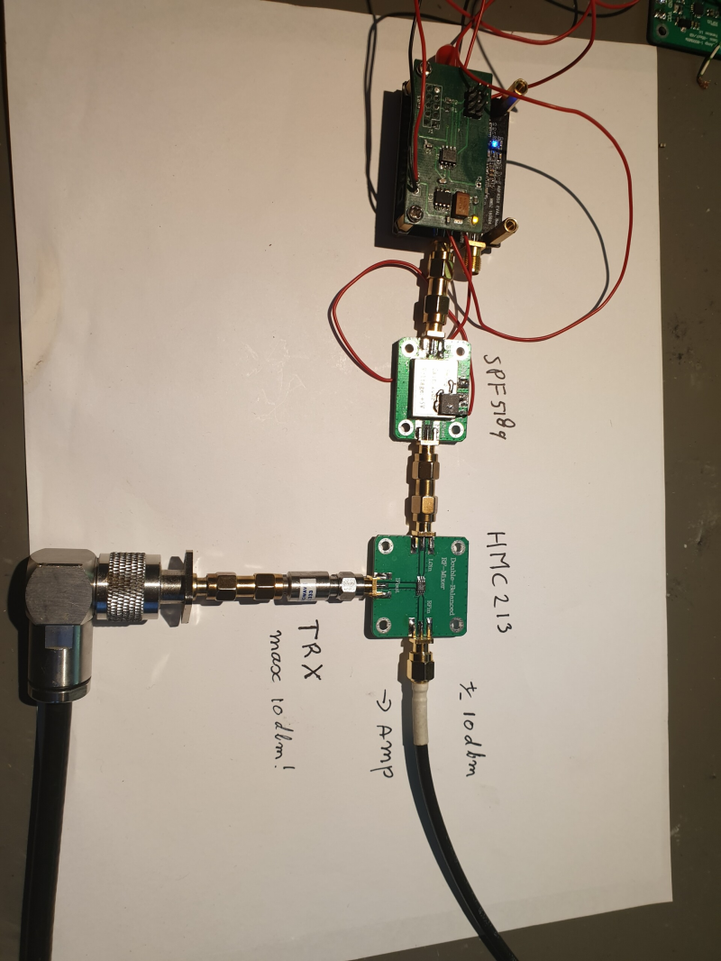 I made a small test situation with the ADF4351, a SPF5189z and a HMC213 mixer.