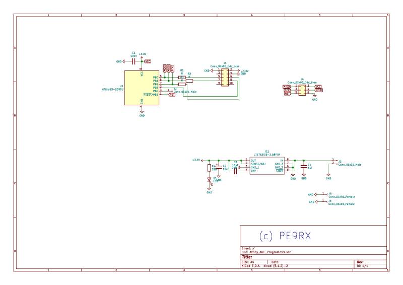 All the other PINS are connected to the programming connector, so these can be used for other purposes when programming of the Attiny has been done.